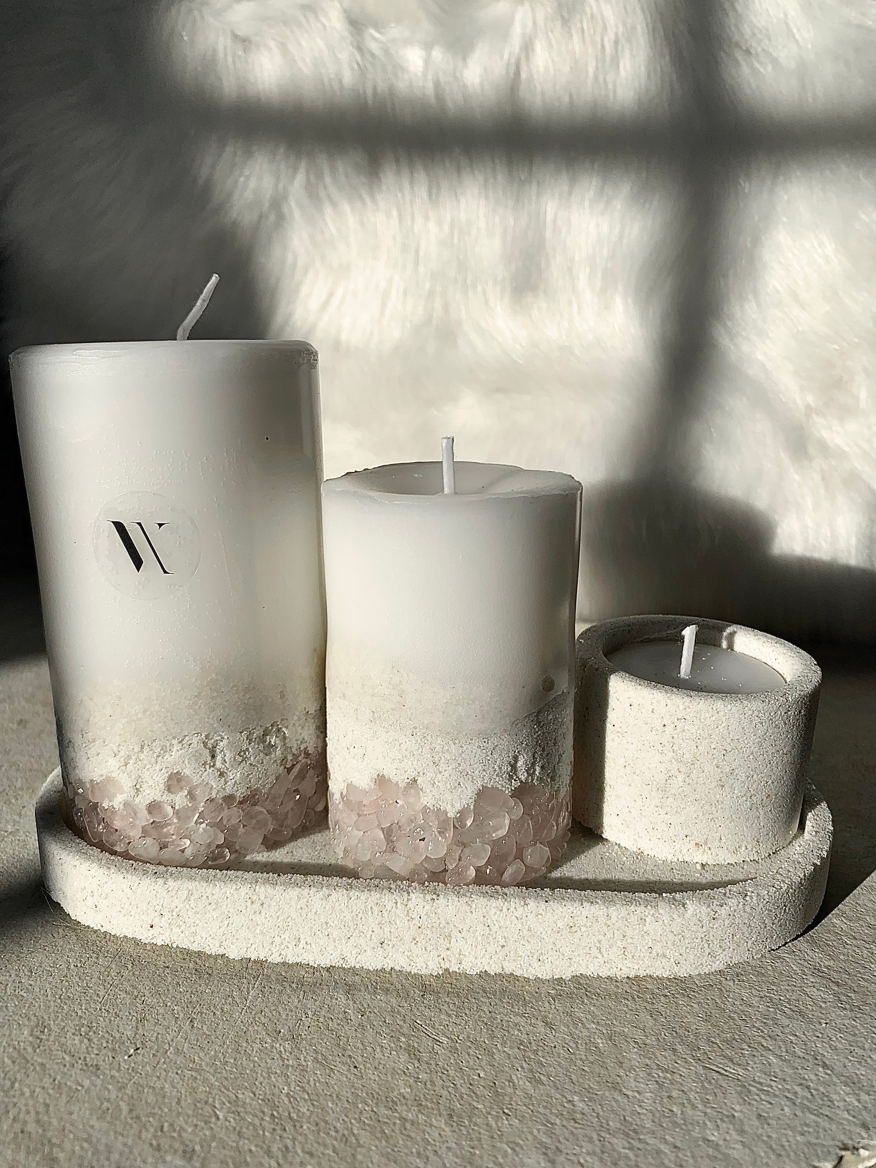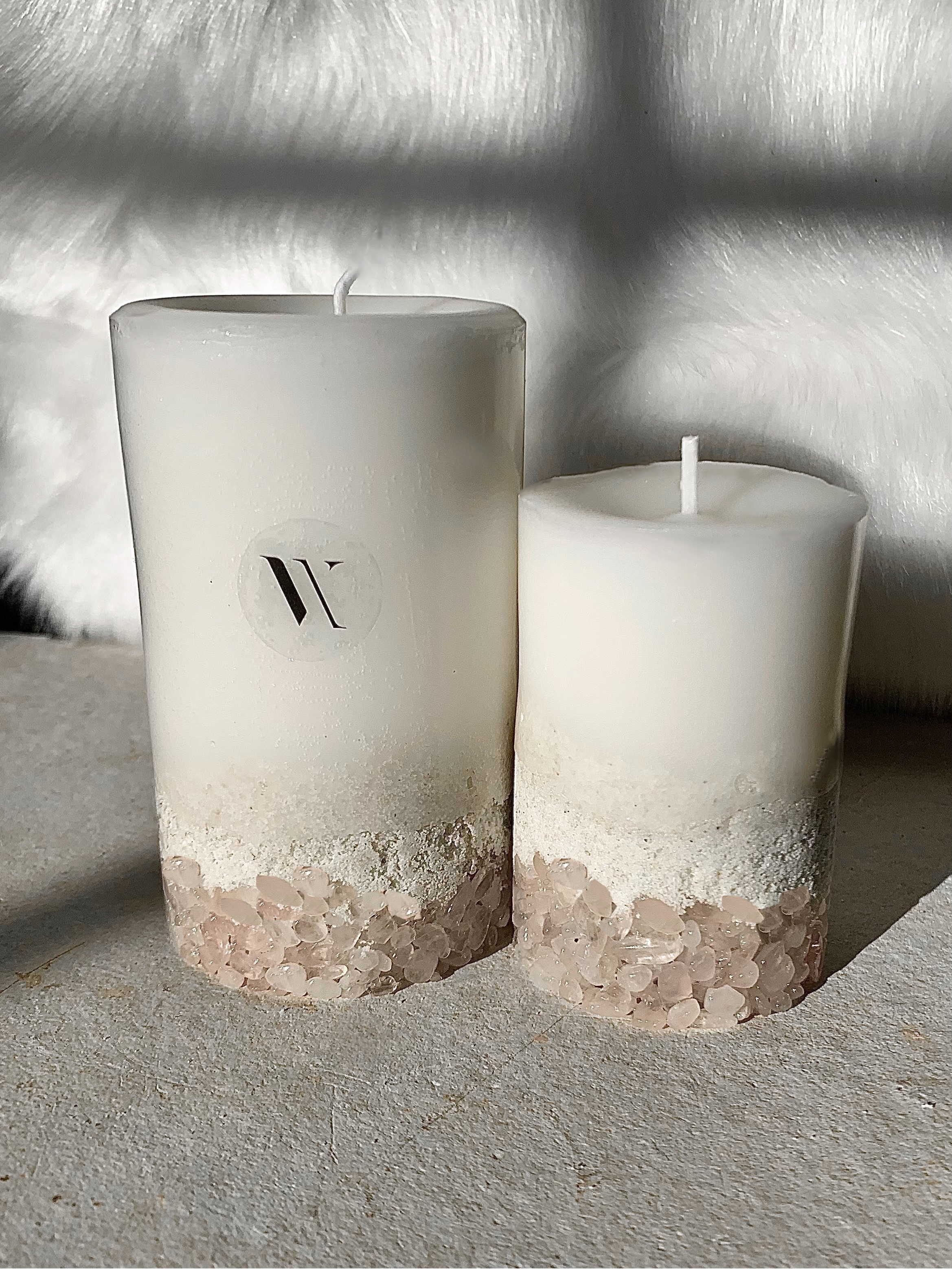 La bougie Paradise évoque l’histoire d’un sanctuaire paisible, inspiré par les plages de sable blanc et les nuances délicates du quartz rose. Faite avec du sable blanc et du quartz rose, elle rappelle visuellement une oasis de sérénité, un paradis où la douceur des grains et la chaleur des couleurs créent une ambiance réconfortante.