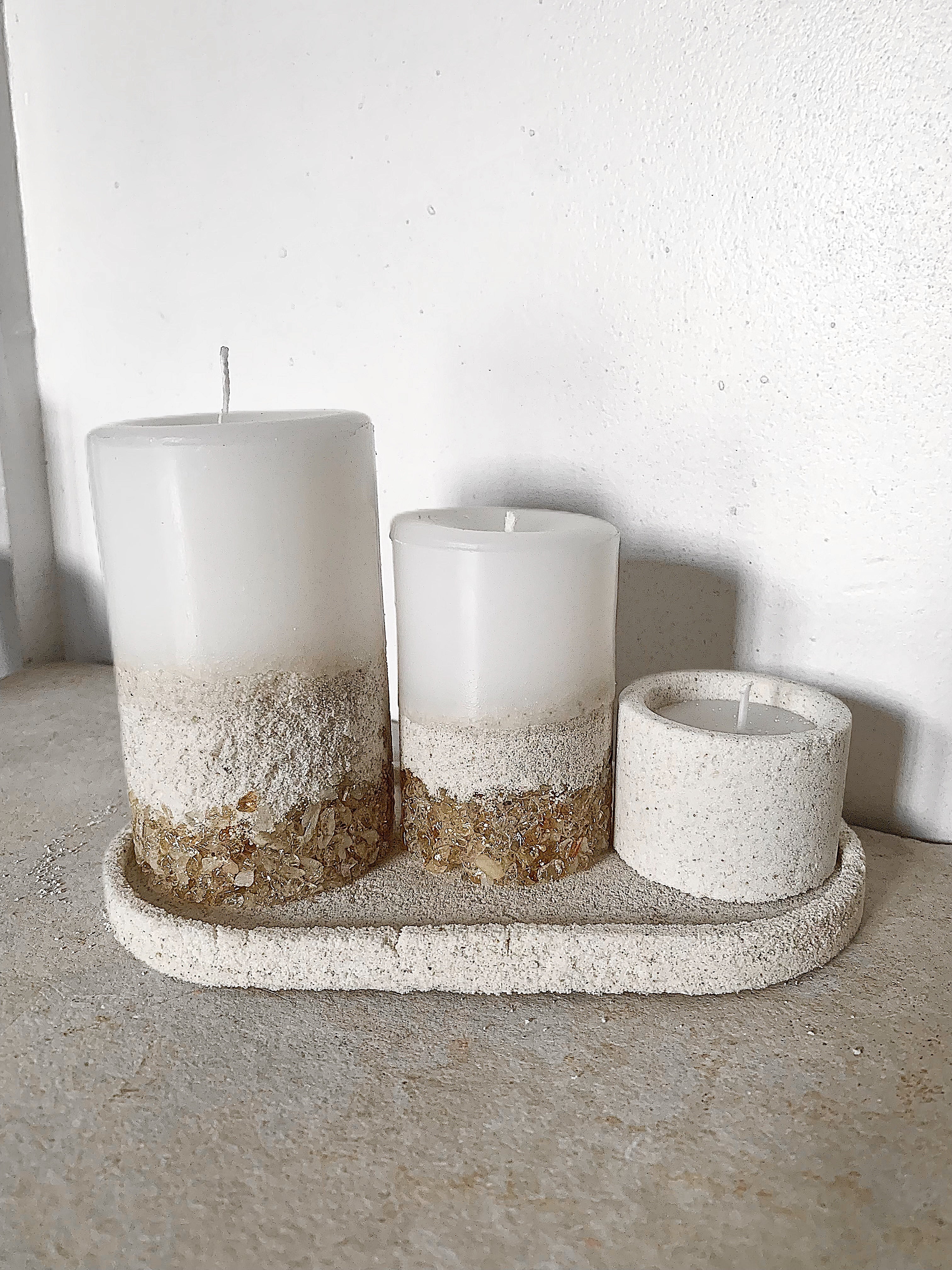 Toutes nos bougies sont coulées et sculptées à la main, elles peuvent donc ne pas être identiques et présenter des petites imperfections à la surface.