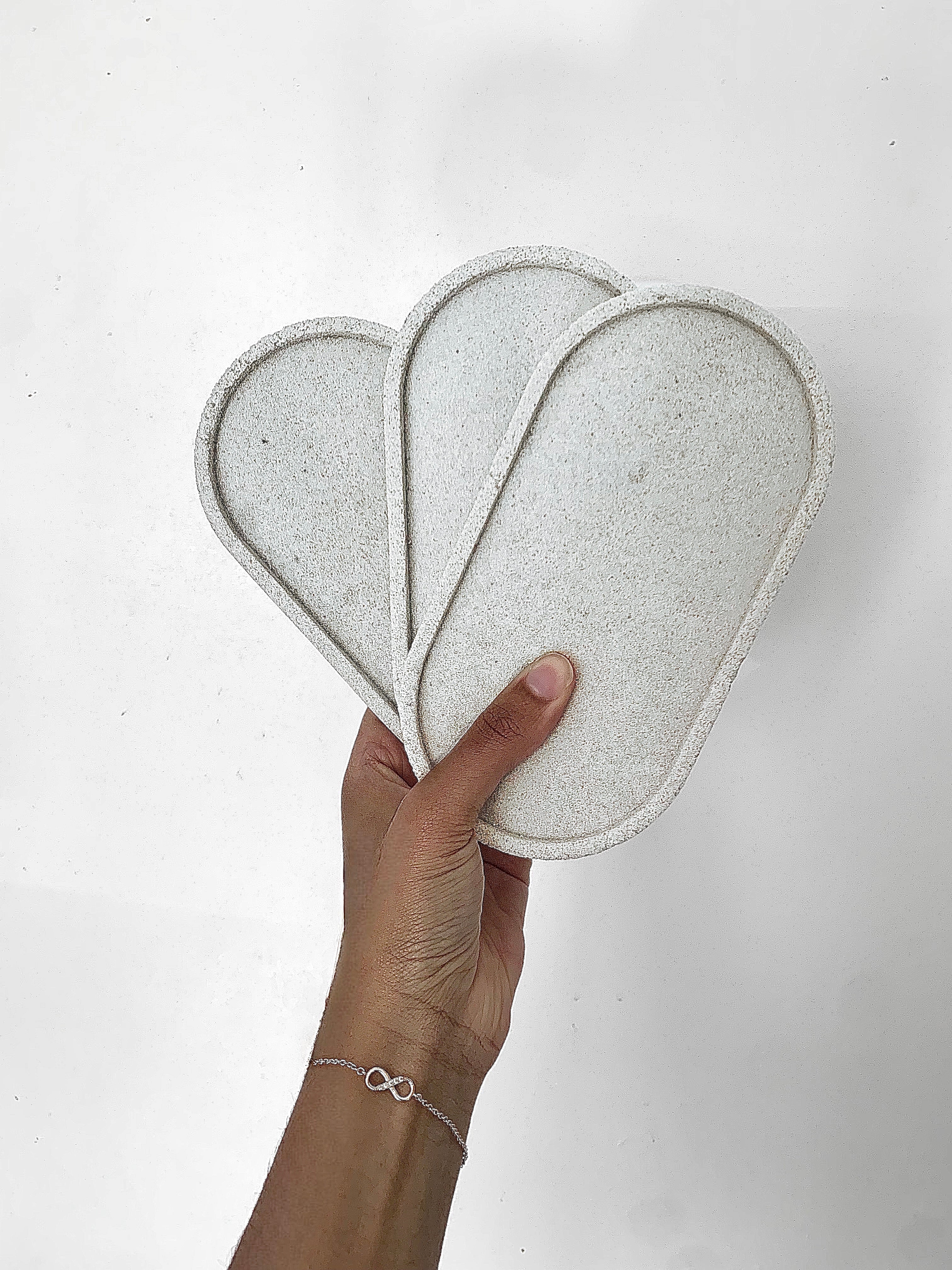 Chaque plateau est une œuvre d’art unique, façonnée à la main avec du sable soigneusement sélectionné pour sa texture et sa couleur.